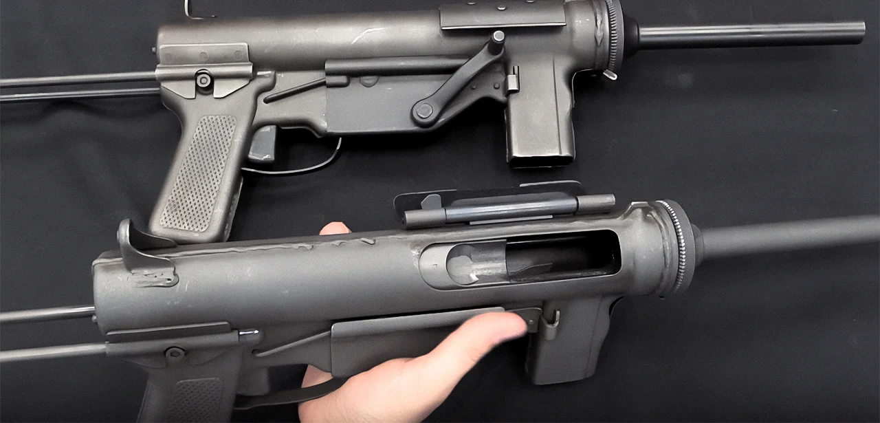 It was further simplified by removing the cocking handle and elongating the ejection port.